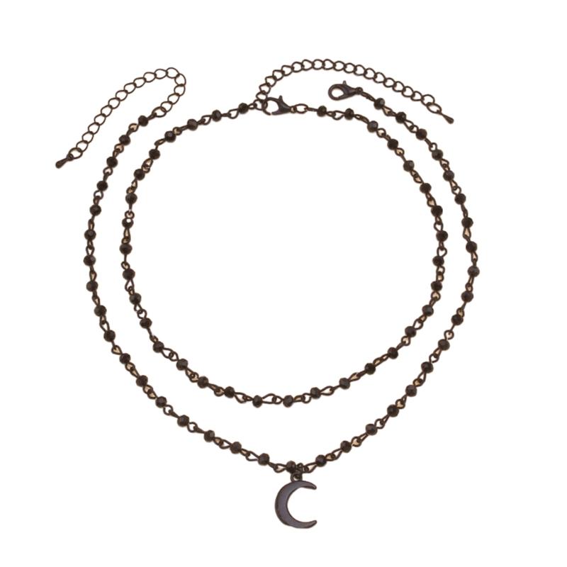 Fashionable Beaded Necklace Moon/Crucifix Pendant Collarbone Chain Elegant Double Layer Neckchain Choker Acccessory