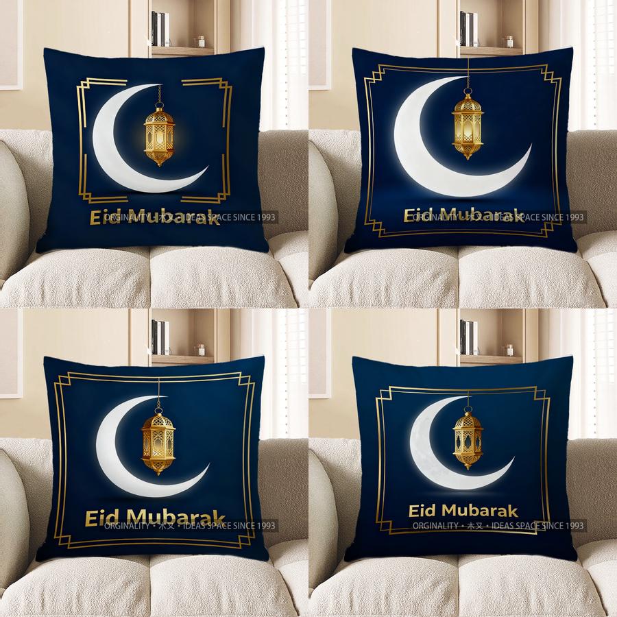 2D Eid Mubarak Moon & Lantern Cushion Cover Pattern Cushion Cover Suitable For Sofa Bedroom Car Pillow Cover