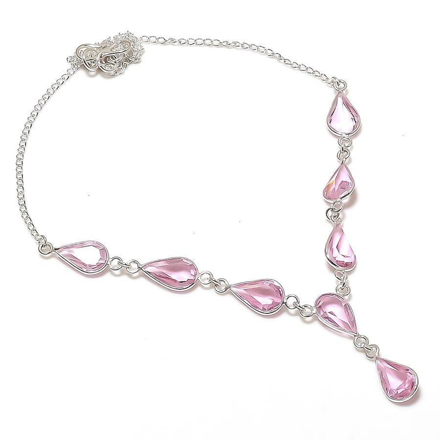 Natural Pink Kunzite Gemstone 925 Sterling Silver Jewelry Necklace 18" ASN-5908