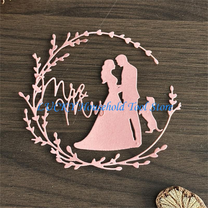 J0MC Wedding Mr and Mrs Decorative Die Cut Carbon Steel Cutting Dies for Card Making
