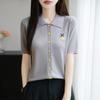 Summer Updated POLO Collar T-shirt for Women Heavy Industry Embroidery Slim Short-sleeved Simple and Versatile Knitted Pullover Half-sleeved Top