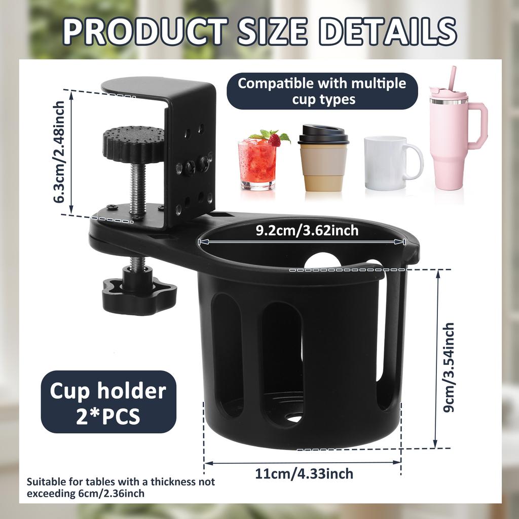 2Pcs Desk Cup Holder Clamp Adjustable 360 Degree Rotating Cup Holder Anti Spill Table Edge Clamp for Coffee Mugs Water Bottles