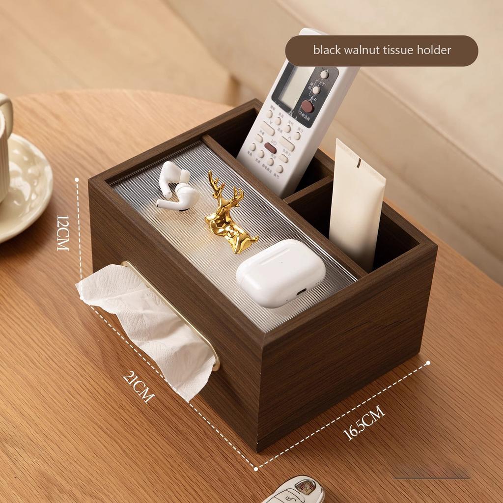 Luxury Wooden Tissue Box with Remote Holder - Desktop Organizer for Living Room, Hotel - Stylish Facial Tissue Dispenser