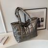 Nylon Waterproof Big Grid Soft High Capacity Shoulder Bag for Women 2025 Hit Winter Short Handle Padded Handbags Black