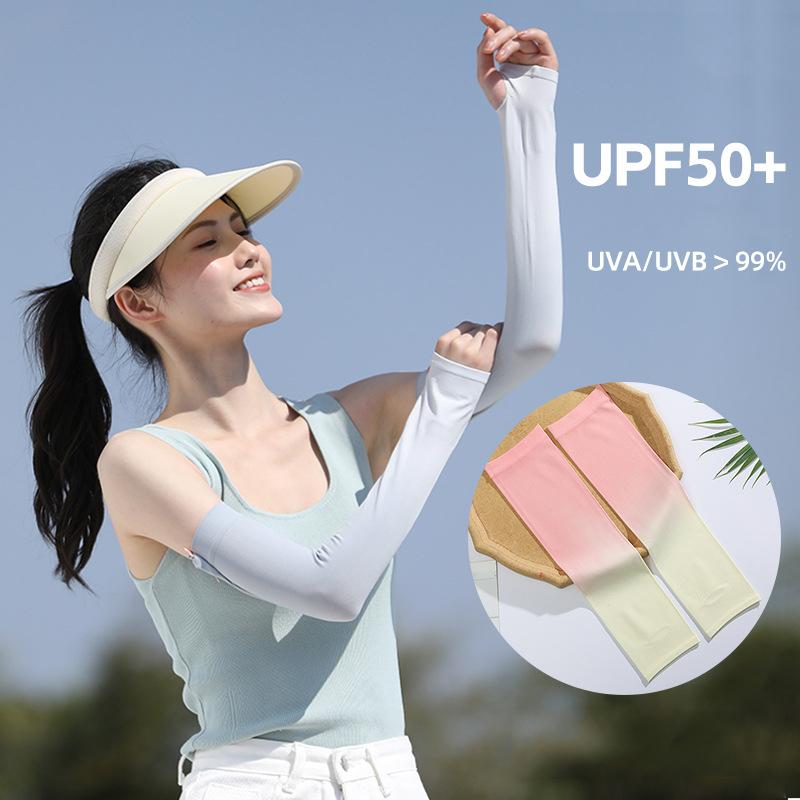 New Gradient Cool Arm Warmers For Women Girls Summer Soft Driving Sunscreen Long-Sleeved Outdoor Solid Color Riding Sleeves