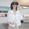 Women's White Sheer Short Jacket Button Down Shirt Collar Casual Loose Fit Lightweight Outerwear