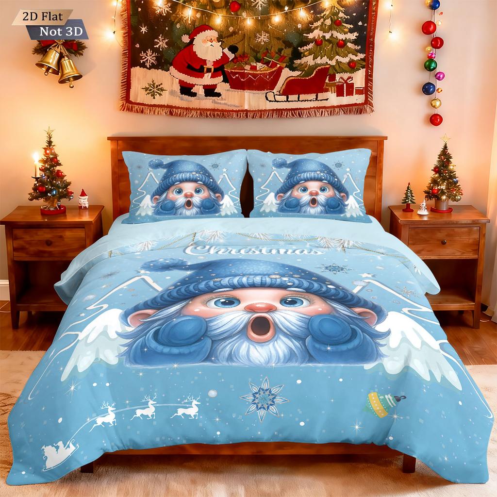 3pcs Christmas cartoon goblin print coreless duvet set multi size bedroom dormitory bedding holiday decoration machine washable