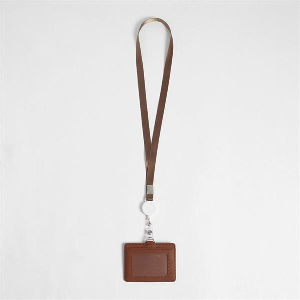 Wallet-type employee ID case + necklace lanyard (brown) reel holder
