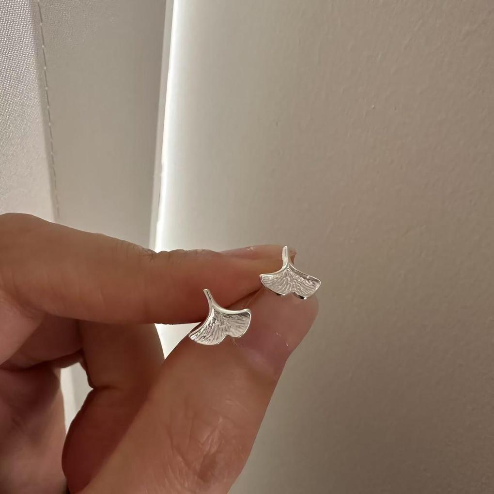 Women's Sterling Silver Ginkgo Leaf Simple Minimalist Earrings