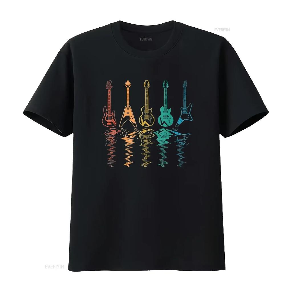 Guitarist Music Lover Retro Vintage Guitars Reflection T Shirt Black 2X Large vintage Washed streetwear Unisex Stretched