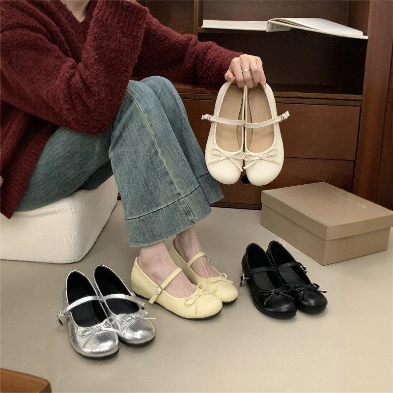 Inner Heightening Silver Bow Ballet Shoes Women's Shoes Spring Fairy Platform Mary Jane Shoes