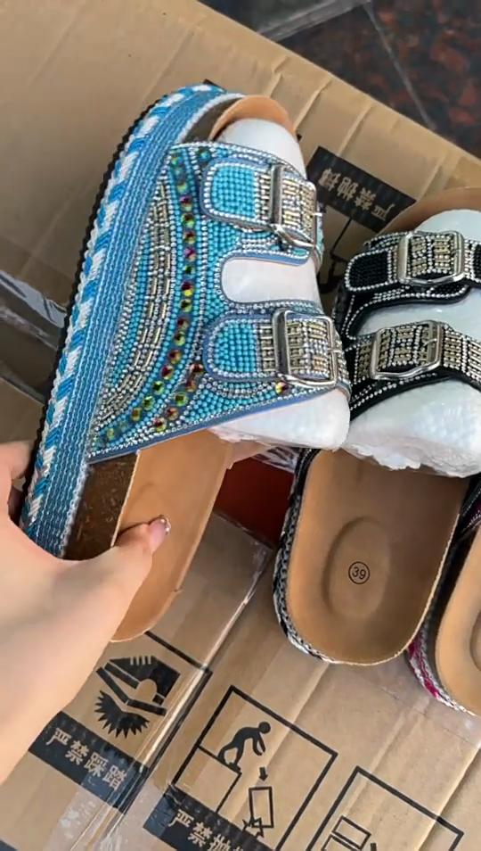 New Summer Rhinestone Platform Slippers - Women’s Plus Size Belt Buckle Slides for Outdoor Wear