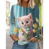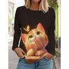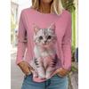 Stampa 3D, donna, t-shirt, moda, top, manica lunga, scollo rotondo, autunno, quotidiano, moda, pullover,