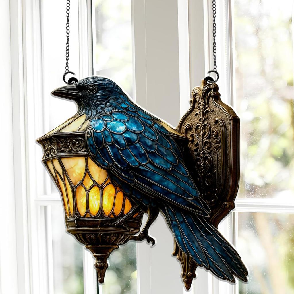 Gothic Raven Decor Decorative Acrylic Sun Catcher Faux Stained Glass Window Hanging Exquisite Halloween Crow Decor For Study