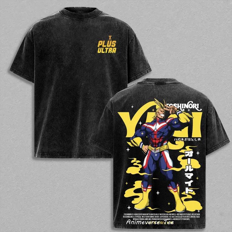 Anime My Hero Academia All Might Graphic T Shirt Men Short Sleeve Clothing Oversized Tshirt Washed Cotton Tee Harajuku T-shirt