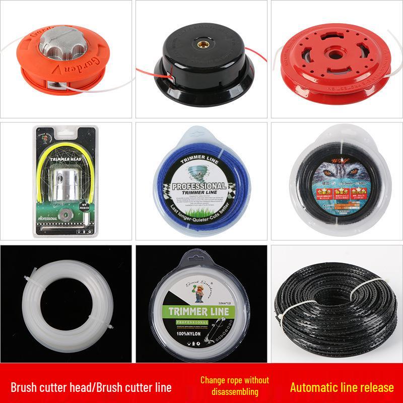 Garden Lawn Mower Accessories: Brush Cutter, Trimmer Lines, and Trimmer Heads.