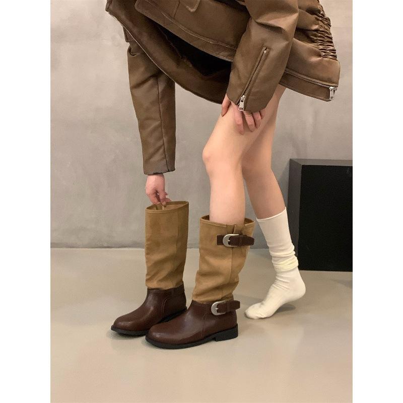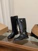Coarse Heel Black Locomotive Long Knight Boots Women's Boots Mid-Autumn Boots Martin Boots Skinny Boots