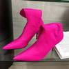 Stivali alla caviglia da donna in tessuto elasticizzato Autunno Primavera Punta appuntita sexy Tacco alto Moda Calzini da donna Scarpe con tacco a spillo
