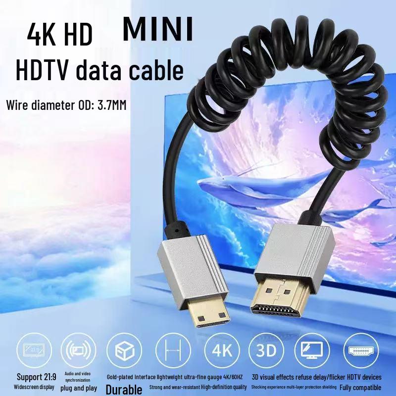 Ultra-thin Retractable HDMI to Mini HDMI 2.0 4K 60Hz Cable for HDTV, Computer, Projector, Camera