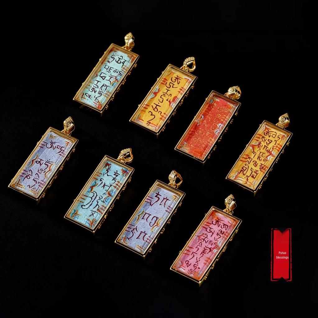 Hand-Painted Zodiac Amulet Necklace: Twelve Signs & Eight Guardian Charms in a Thangka Gha Box.