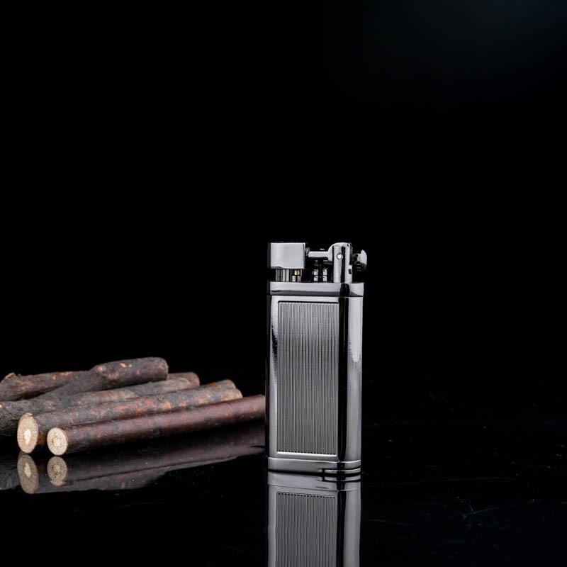 Black Vertical Stripe Windproof Lighter with Metal Pipe and Oblique Flame Design