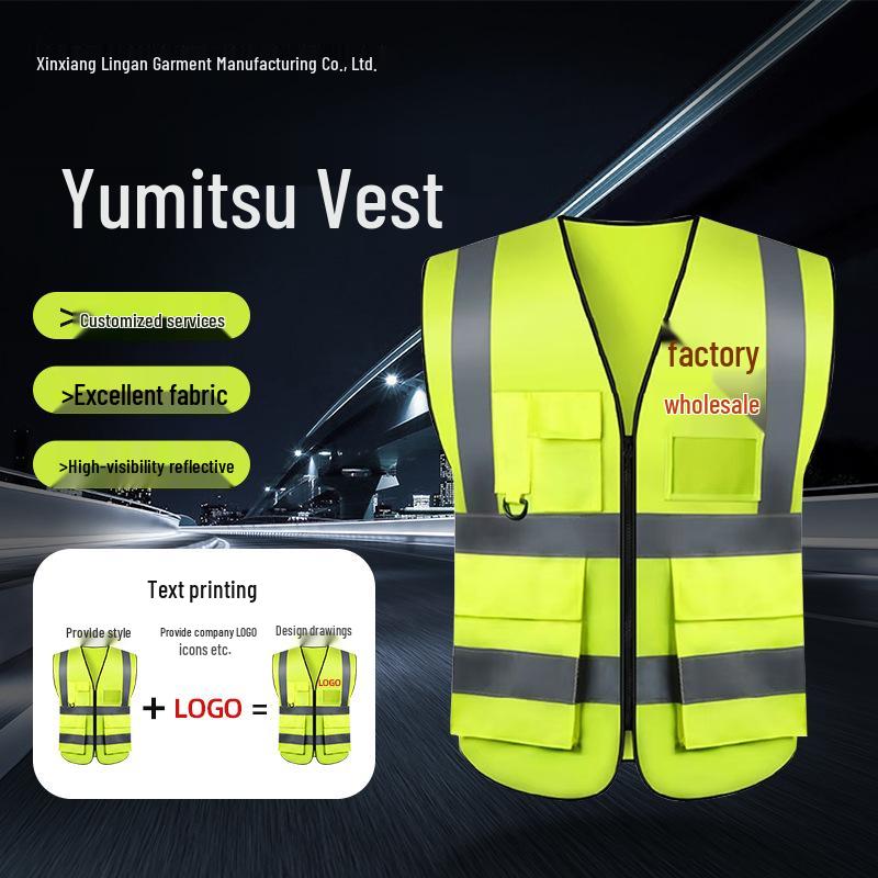 Multi-Pocket Reflective Vest for Sanitation & Construction with Printing