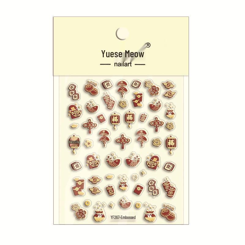 New Year Fortune Lion Dance Nail Stickers: 3D Relief for Cute and Prosperous Nails