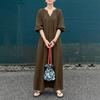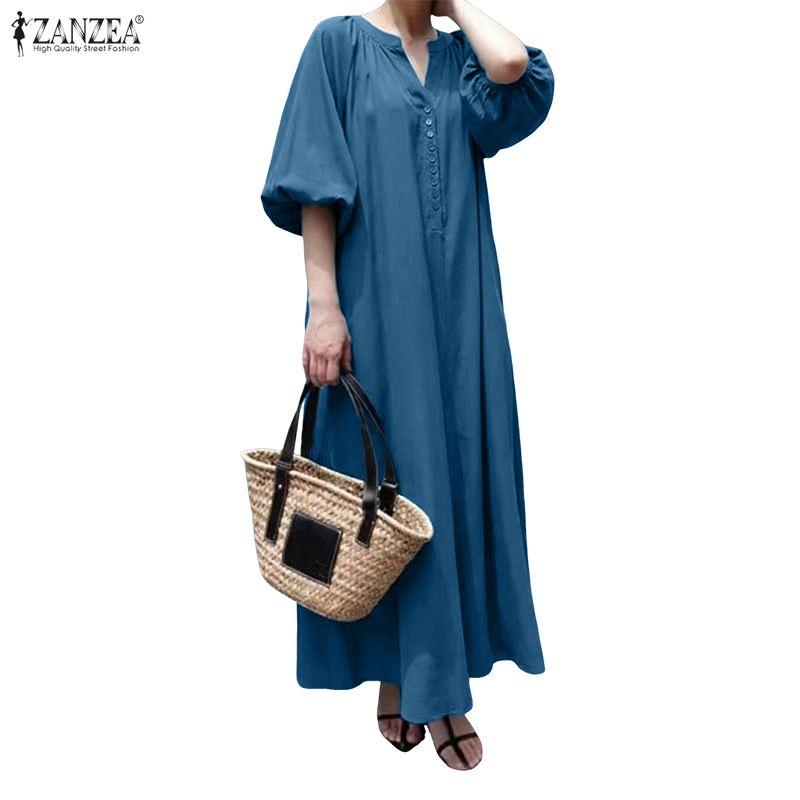 ZANZEA Women Casual V-Neck Loose Half Sleeve Long Dress