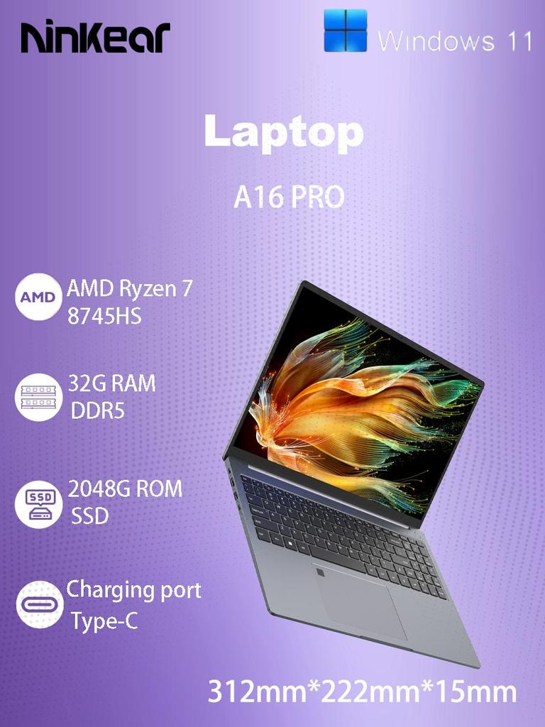 Laptop Ninkear A16 PRO 16.0'' 32G+2T SSD AMD Ryzen™7 8745HS 2560x1600 120Hz Refresh Rate