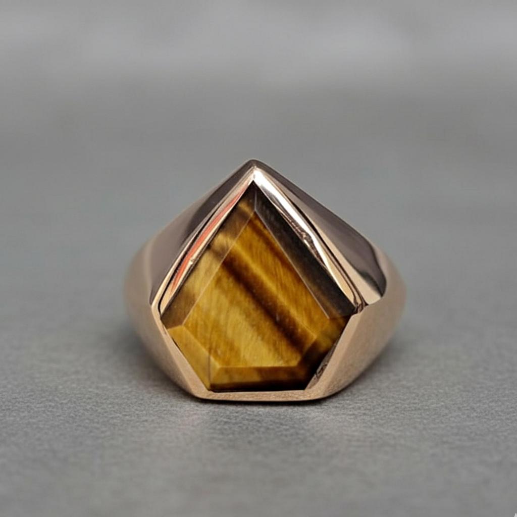 Diamond Cut Tiger Eye Gemstone Signet Ring, 925 Sterling Silver Jewelry, Handmade Boho Promise Ring