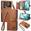 For Oukitel C62 Case RFID Blocking Zipper Pocket Leather Wallet Phone Cover with Strap