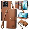 For Honor X5c Plus 4G Case RFID Blocking Zipper Pocket Leather Wallet Phone Cover with Strap