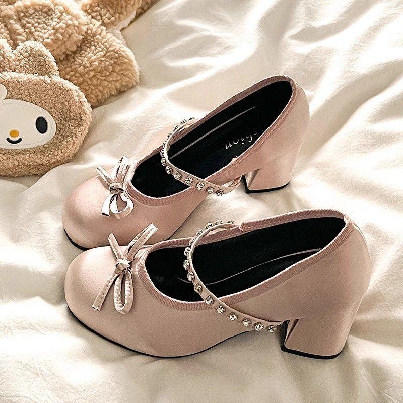 Daily design sense rhinestone word with Mary Jane shoes spring and autumn princess style bow shoes