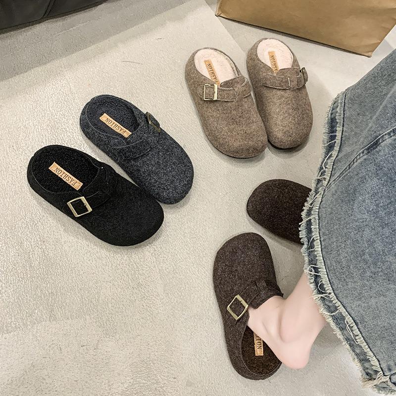 Cotton towed fluffy slippers women wear new autumn and winter velvet retro one-pedal lazy shoes bag head