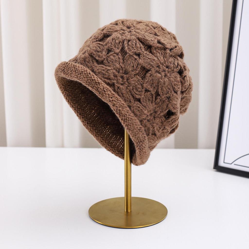 Handmade Double-Layer Crochet Wool Beanie with Roll-Up Brim for Women