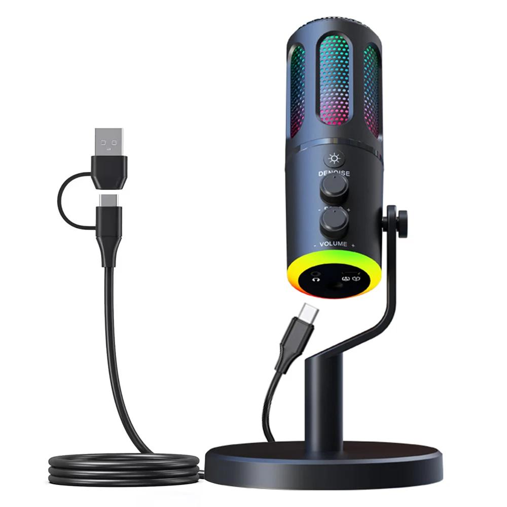 Professional RGB Condenser Microphone for Laptop USB PC Mic with Earphone Jack for Gaming Streaming Video Recording Broadcast