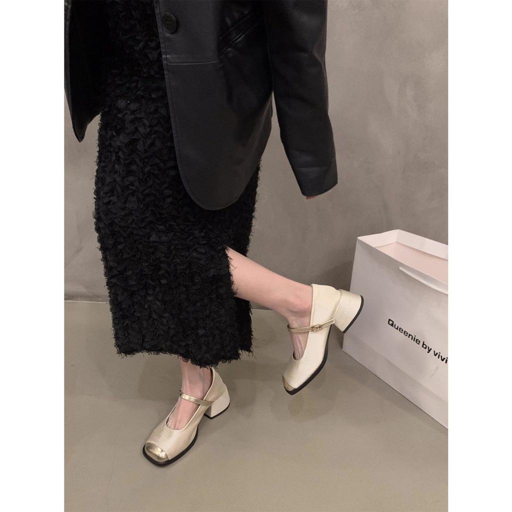 One-word buckle premium thick heel summer Internet celebrity versatile single shoes women feeling foreign spring Mary Jane shoes