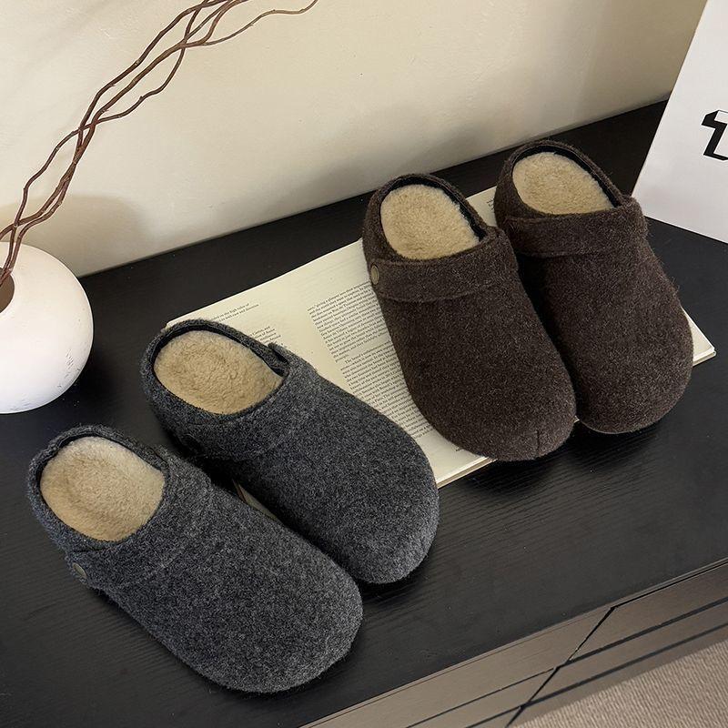 Felt season versatile and thin velvet retro women's half-to-muller shoes Birkenstocks bag head slippers thick sole