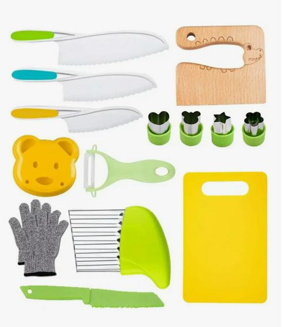 14-Piece Safe Children's Cooking Knife Set with Cutting Board for Early Education