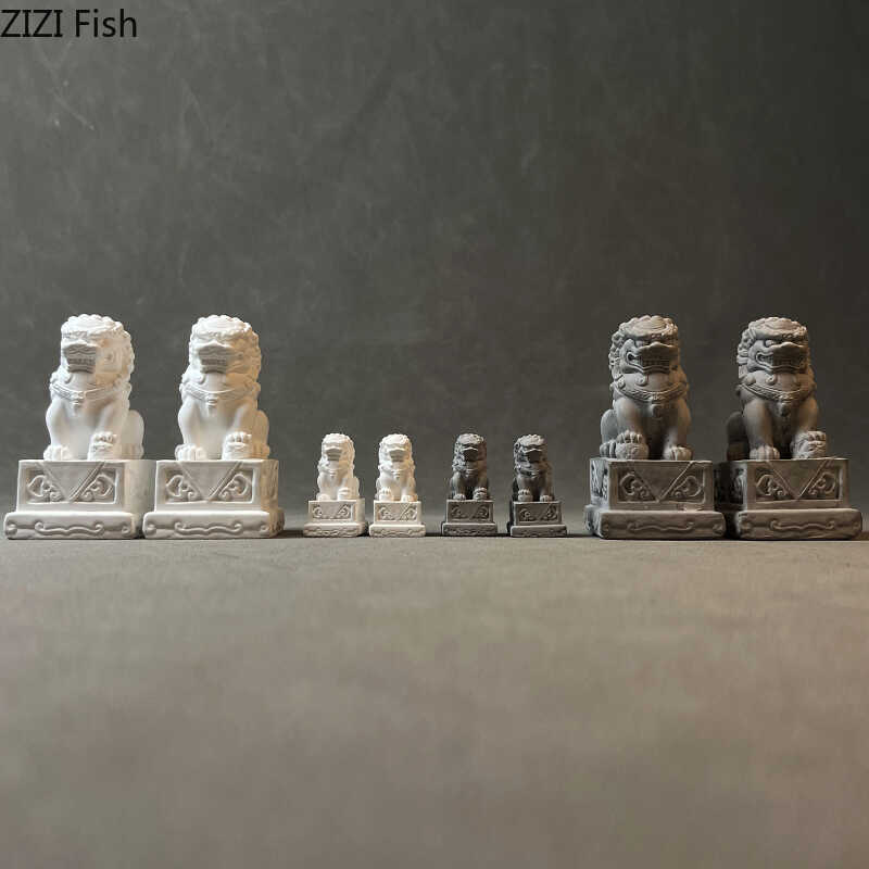 Chinese Stone Lion Plaster Statue Table Decoration Creative Feng Shui Landscape Ornaments Sculpture Room Aesthetic Decor