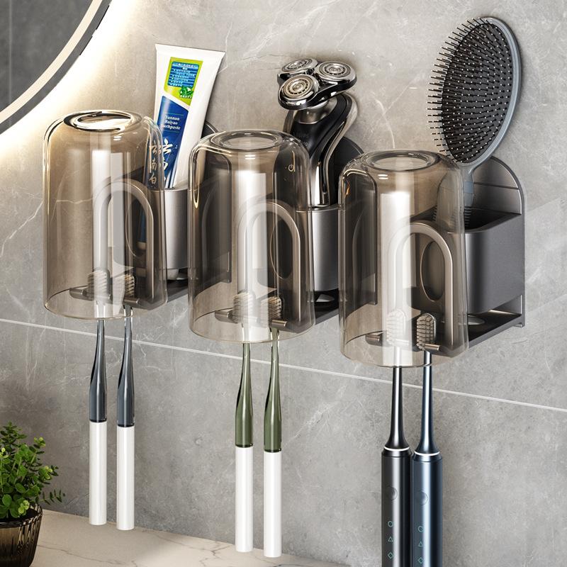 Space aluminum non-punching toothbrush rack, bathroom mouthwash cup, wall hanging, electric toothbrush, toothpaste storage rack
