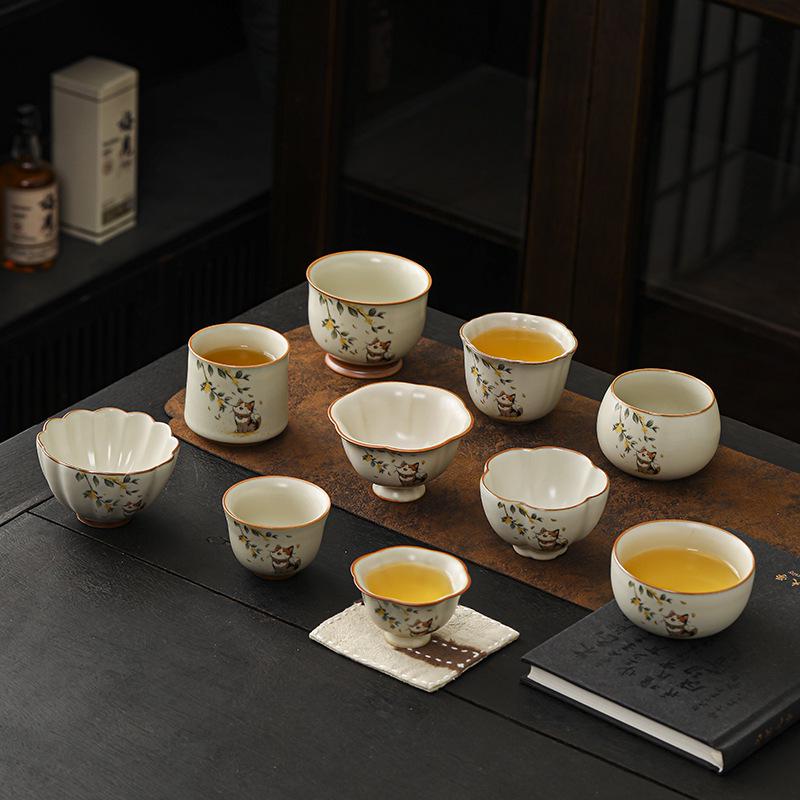Beige Ru Ware Kitten Teacup: Kung Fu Ceramic Tasting Cup for Personal Tea Use
