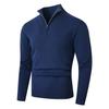 Introducing a versatile men's knit sweater designed for the autumn and winter seasons. This garment features a distinctive stand collar with a convenient half-zip design, offering both style and functionality. Its loose fit ensures comfort while the long sleeves provide extra warmth during colder months. Crafted from a vinylon material, this sweater is both durable and cozy. Enhanced with a chemical fiber blended fur material, it adds a luxurious feel to a classic solid color design, making it an ideal fashion base layer for the modern man.