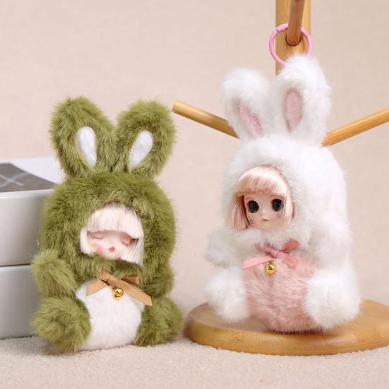 This adorable plush doll features a charming rabbit ear hat and a soft, cute baby face with delicate blush details, radiating innocent charm that captures hearts instantly. Crafted from high-quality, fluffy plush material, it offers a gentle, cotton-like touch that is both relaxing and warmperfect for cozy autumn and winter days.