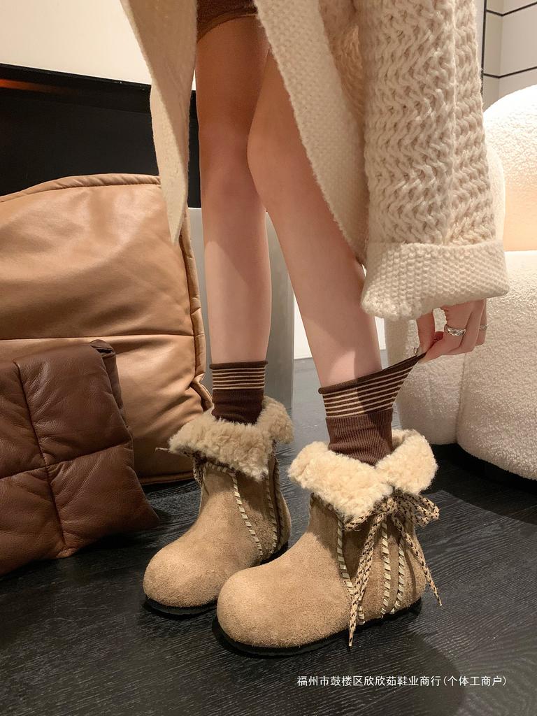 cm inner height increase~ leather thick-soled Maillard two wear snow boots women's winter velvet thickened cotton shoes