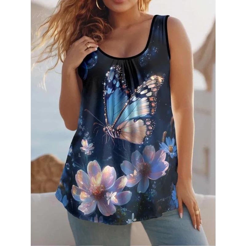 Gilet da donna a girocollo stampato in 3D, maglietta sportiva casual senza maniche