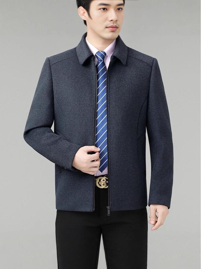 This mid-length casual lapel coat is the perfect choice for middle-aged dads seeking style and comfort. Crafted from high-end cashmere wool, it offers a luxurious feel and a sophisticated look. The coat features a loose fit, providing ample room for movement while maintaining a tailored appearance. With medium outerwear thickness, it's ideal for layering in varying weather conditions. The solid pattern and wool material enhance its timeless elegance, making it a versatile addition to any wardrobe.