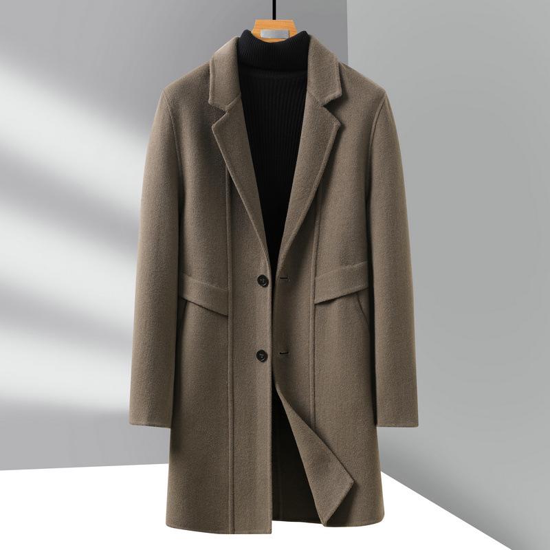 Experience the perfect blend of style and warmth with this men's mid-length woolen coat, designed for the cooler autumn and winter months. Featuring a regular fit, this jacket offers a sophisticated, tailored neckline with a suit collar that emphasizes its Korean-inspired casual design. Crafted from insulated wool material, this coat provides exceptional comfort and warmth. The solid pattern enhances its versatility, making it an ideal choice for various occasions and outfits.