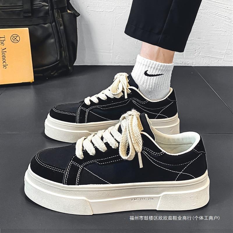 Canvas men's shoes spring and autumn 2 new summer breathable trend versatile sports casual black thick baseplate shoes
