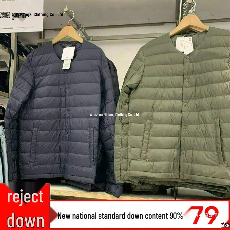 Men's Lightweight Collarless Down Vest: Large Size Round Neck Warm Jacket